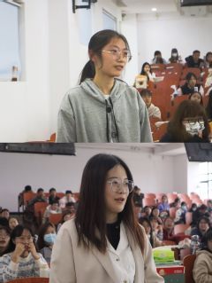 在最后的答疑环节中,张雯就学生提出的学习类、分流程序类问题做出详细解答。“大家可以咨询师兄师姐的意见,但最重要的还是找到最适合自己的专业。”张雯叮嘱同学们慎重选择,及时填写分流志愿调查表。至此,新闻学院新闻系2021级本科生专业分流宣讲会圆满结束。