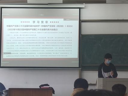 (学生通讯员 韩鸿宇)10月27日,新闻与文化传播学院本科生第二党支部在文波401开展了十月主题党日活动,活动主题为“自信自强新时代 踔厉奋发新征程——深入学习宣传贯彻党的二十大精神”。本次活动共有87名支部成员参加,因校外实习等原因,9人参与线上会议,6人请假。活动由支部副书记赵冠宇主持,支部书记杨倩文参加线下活动。与会人员遵守防疫工作要求,佩戴口罩隔位就坐。