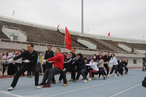 同日下午2时,拔河比赛即将开始,新闻学院学生组运动员已经进入了“战斗”状态,双手紧握麻绳,身体向后微倾,伴随着观赛学子们铿锵有力的战鼓擂动,他们齐心协力凝成了一股绳!与此同时,新闻学院教工组对战会计学院教工组的拔河赛战况胶着,新闻学院的同学们为教师呐喊助威,教师们也在激烈的力量比拼中不甘示弱,他们的合作和奋斗精神深深打动着现场的同学们。
