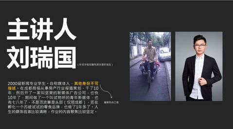本次讲座刘瑞国以《新媒体时代媒体职业人的转型与不转型》为主题,聚焦他10年财经媒体和9年创办自媒体的经历,分享真诚思考与感悟:十万加的媒体村、大V、营销号、流量、反转,人人皆媒体的传播权力分散时代,以媒体为职业的人越来越多,还需要专业媒体人吗,专业媒体人应该向新媒体人学习什么?专业是不是媒体人的职业壁垒?媒体人的童子功是什么?结合这些问题刘瑞国谈到了许多新锐的观点,并对这些观点一一作出了全新阐释。