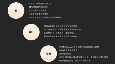 刘瑞国在分享讲座内容之前,回顾了自己的青葱岁月,有迷茫也有错愕,有缺憾也有不足,但幸运的是总怀揣着新闻理想。他坦诚地分享了他担任《共响》主编的校园办报经历,并用“武珞路114号的窄小与辽阔”来总结自己的大学生活,在互联网并不是十分普及的年代,自己经常会给好友甚至陌生的笔友写信,收信和发信地址是“武珞路114号”,这个地址不仅是一串小小的坐标,更是带着几分自豪与少年意气风发的小红旗般的印记。“窄小”是说首义校区的南门到北门,一袋烟的工夫就走完了;“辽阔”体现在图书馆中的浩如瀚海的书本和读物还有老师课堂打开的世界。他特别提到感谢学院老师“不惜利用自己的资源为我们安排实习机会”,正是得益于老师们的推荐,在校期间他获得了从中央电视台到经济日报再到大连日报的实习,正是这些优秀的媒体学习到的经验,使得他迅速地成长起来,学习了许多的工作技巧,从而为他更好地完成自媒体的各项事务夯实了基础。