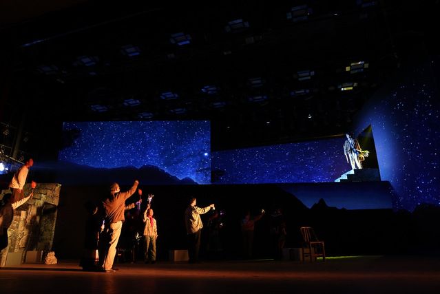 在舞台剧的尾声,舞台上,茫茫夜色、遥遥群山、幽幽空谷、点点繁星,一束束火把蜿蜒而上,熊熊的火焰直抵天空。苏老师的画外音响起,“那一刻,我心里默默呼喊无数遍‘我离开是为了更好地回来’。”这也道出了无数支教师生的心声。