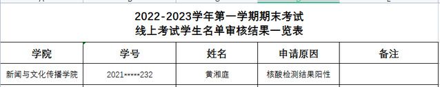 根据教务部《关于做好2022-2023学年第一学期期末考核相关工作的通知》要求,经学生个人申请,学院审核,现将申请线上考试名单公示如下: