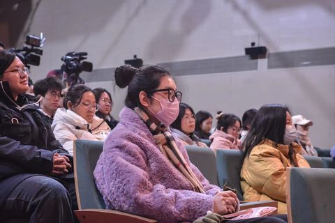 演员们的分享让台下的同学们都对《俗世奇人》这部剧以及小说原著有了更深入的了解,在互动环节,新闻与文化传播学院中文2101班的王钰霏从文学的视角向刘纪铭提出了“如何将一个原本在剧中没有的人物建立起来”的疑问,刘纪铭表明自己完全进入了整部剧的环境,在与周围角色的交互中逐步建立起完整的人物形象。