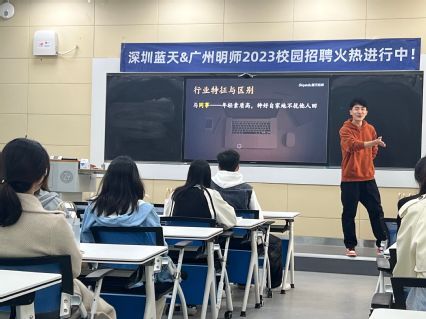 HR李老师就企业当前的经营现状和用人需求展开宣讲,他从公司概况及发展历程、当地政府的扶持政策、公司影响力、薪资待遇和晋升渠道等多个方面介绍了集团的优势所在,同时介绍了公司的人才培养方式以及2023届毕业生的招聘计划。会上,李老师针对同学们的疑惑一一进行解答,现场气氛活跃。宣讲结束后,深圳蓝天教育集团在招聘会现场开展了分学科面试,同学们积极投递简历并踊跃参加现场面试。