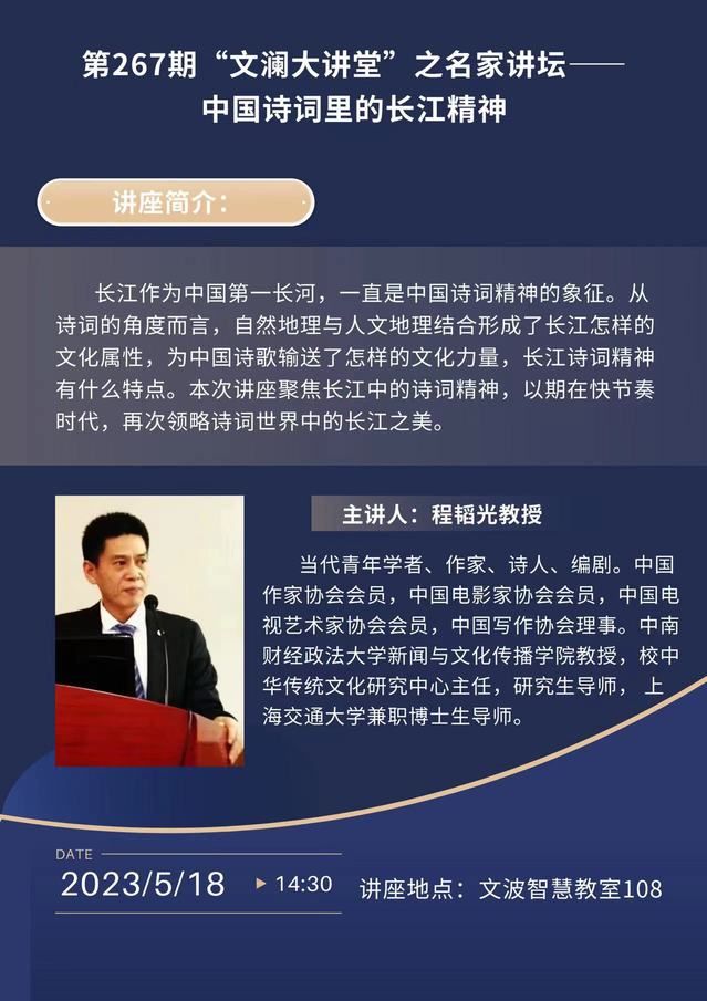 【讲座预告】文澜大讲堂”之名家讲坛——中国诗词里的长江精神