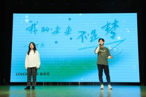此外,丰富多样的文艺表演也为大会增彩添色。由杨康妮、王子健、杨洋、胡馨予带来的朗诵节目《吹号者》,赞颂了革命者们的热血与担当;由徐明哲、潘祥羽带来的演唱节目《我的未来不是梦》,传递青年梦想与激情。