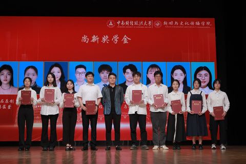 首先颁发的奖项是新闻学院2023年“尚新奖学金”。尚苑画室教学校长占立秋作为奖学金捐赠方代表致辞。他对获得奖学金的同学提出三点希望:希望以上同学,不负社会、学校和老师的希望,励志成长,关心学校,服务社会;希望同学们珍惜荣誉,在实践中锻炼成才,感恩社会;希望同学们意志坚强,完善自我,不断迎接新的挑战。随后,占立秋校长为《逐光的孩子》主创团队、樊蕴萱、何佳欣等九位获奖学生颁奖。