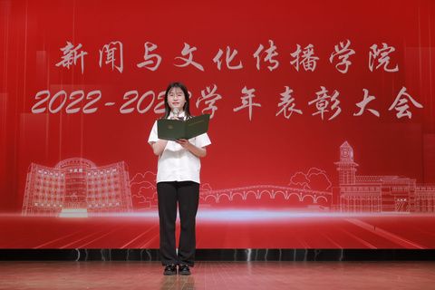 党委书记黄俊雄宣读新闻学院2022-2023学年表彰决定。院长罗晓静、副院长朱恒、张雯,党委副书记赵晓、副教授朱浩分别为获奖学生颁奖。奖项包括院级优秀学生干部、院级优秀共青团员、校级优秀学生干部、校级优秀共青团员、模范兼职团干、优秀团学组织、创新实践先进个人、红旗团支部和最美团支书在内。获奖人员轮流上台领奖,展现青年风采。