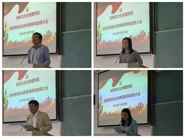 (通讯员 张娇)为巩固深化主题教育成果,扎实推进师德师风建设,贯彻落实巡视整改要求,10月19日下午,新闻与文化传播学院通过集中学习、观看专题片、交流讨论、自查自纠等多种形式,组织召开师德师风教育大会暨10月主题党日活动。