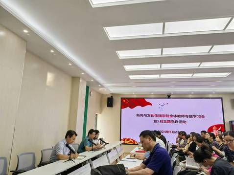 (通讯员 张娇)为进一步突出学习实效,促进成果转化,5月23日下午,新闻与文化传播学院党委在文波楼510会议室组织召开全体教师专题学习会,并通过支部书记讲纪律党课、领学导学、分组研讨等多种形式组织开展5月主题党日活动。