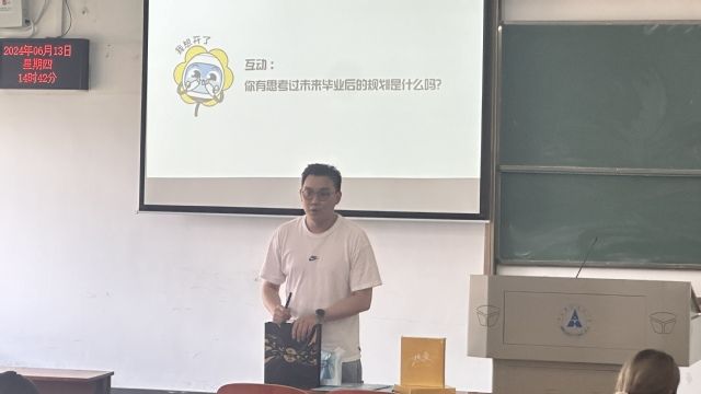 讲座伊始,田相霖与同学们积极互动,了解同学们对未来毕业后的规划。他通过一系列数据图表展示了当前就业市场的趋势,分析了2024届毕业生希望就业的企业类型,以及2023年重点城市不同层级平均月薪等数据,让同学们更为全面的了解近年的就业市场。
