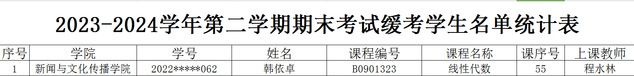 新闻与文化传播学院2023-2024-2学期期末考试申请缓考审核结果公示