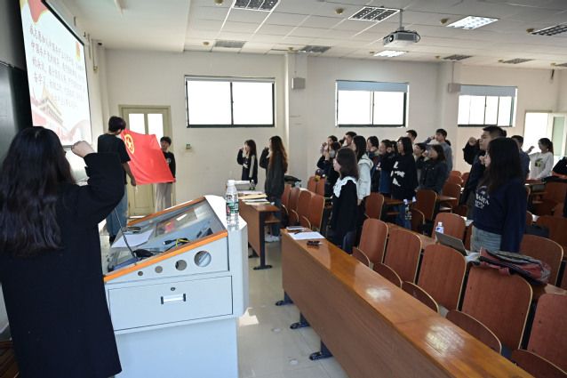 团员代表孙航星带领新发展团员庄严宣誓。“我志愿加入中国共产主义青年团,坚决拥护中国共产党的领导,遵守团的章程,执行团的决议,履行团员义务,严守团的纪律,勤奋学习,积极工作,吃苦在前,享受在后,为共产主义事业而奋斗。”