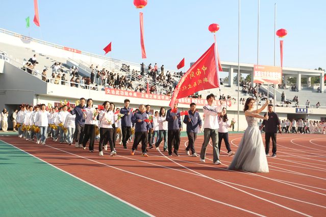 入场完毕后,全体人员肃立,奏唱国歌,五星红旗在晨光中冉冉升起。随后的文艺表演将全场气氛推向高潮。在首日的比赛中,新闻与文化传播学院学子参与了100米、4*100米、3000米、跳高、三级跳远、龙凤戏珠、四项全能等项目,我院教工也参加了趣味足球项目。在第一个比赛日里,学院运动健儿郭其勇和李瀚麗获龙凤戏珠项目季军。拼搏赛场,万水千山只等闲;快意赛场,身似骏马踏秋风。