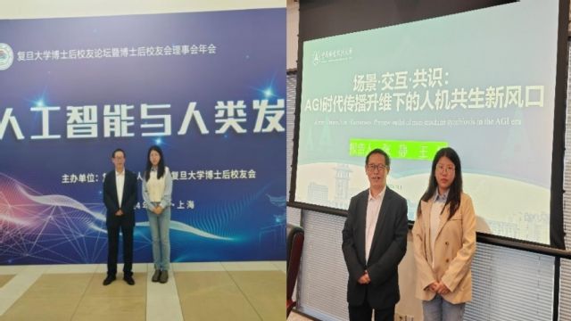 2024年复旦大学博士后校友论坛分论坛在光华楼东辅楼206会议室举行。我院教师张静与2023级研究生王楠就论文《场景·交互·共识:AGI时代传播升维下的人机共生新风口》进行汇报。论文旨在对当前人工智能技术的发展进行辨析,在媒介技术的视角下考察新的传播革命范式,从个体、群体乃至社会的作用角度思考了未来传播的准入路径,并通过凝练关键词的方式解析未来传播升维下的人机共生关系所面临的新风口。该篇论文立足现实,展望未来,具有较强的问题意识,展现了我院师生勤思笃学、贴近社会的科研精神。