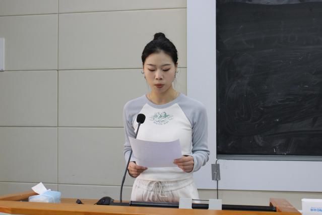 在学院团委书记发言环节,杨倩文提出对共青团员的要求。她表示希望团员们坚定理想信念,努力学习科学文化知识,提高自身能力,为国家现代化建设贡献智慧和力量。