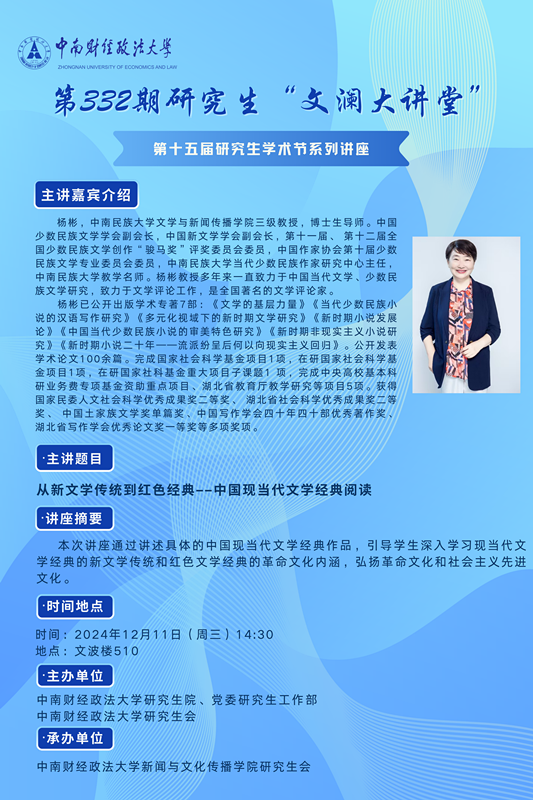 【讲座预告】杨彬:从新文学传统到红色经典——中国现当代文学经典阅读