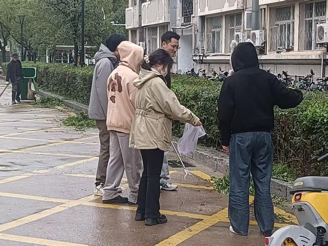 上午8时许,志愿者们准时到达滨湖园附近集合,有序签到。在负责人说明此次活动要求及目标后,各位志愿者们积极行动,合理分配任务,自行结组,迅速投入到紧张而有序的清扫滨湖宿舍楼周围的工作中。在宿舍楼前的公共区域,同学们有的负责将乱停乱放的自行车归位到指定的停车区域,有的则细心地将散落在地的垃圾捡起,分类投放到垃圾桶内。