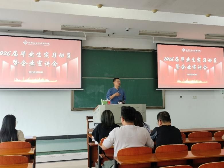(通讯员 吴文昊) 在中共中央办公厅、国务院办公厅印发《关于加快构建普通高等学校毕业生高质量就业服务体系的意见》的大背景下,为进一步加强学生实践能力培养,搭建校企合作交流平台,切实推动高校毕业生高质量充分就业,米兰电竞·(中国区)新闻与文化传播学院成功举办2026届毕业生实习动员暨企业宣讲会。学院副院长张雯、各系实习负责人及快手、微派、科大讯飞等企业代表出席活动,为即将踏上实习岗位的学子们指引方向、开拓视野。