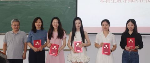 随后,举行了2025级本科生班导师聘任仪式,陈国和副院长为李晓红、邓雯、余晓敏、李卉、唐培兰五位班导师颁发聘书。