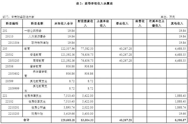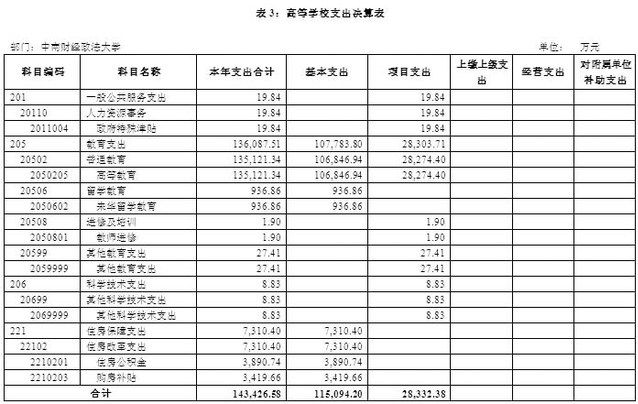 2.高等教育(2050205):反映的是经国家批准设立的中央和省、自治区、直辖市各部门所属的全日制普通高等院校(包括研究生)的支出;