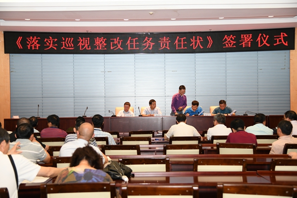 栾永玉书记强调“巡视整改工作绝不能蜻蜓点水,签订了责任状就要真抓实干”。全体责任人要统一思想,提高认识,带头执行整改期间工作纪律和要求,切实把巡视整改工作当成第一要务来抓,集中精力抓出成效。