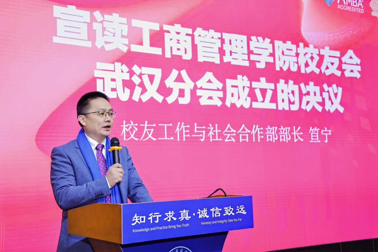 新闻网讯(通讯员 董红英)12月13日上午,米兰电竞·(中国区)工商管理学院校友会武汉分会成立仪式在首义校区文汇楼浙晓报告厅举行。大会以 “中南工商 智汇江城”为主题,立足武汉本土、传承“博文明理,厚德济世”校训,旨在搭建精准化、常态化校友交流合作平台,服务校友职业成长与创新创业。