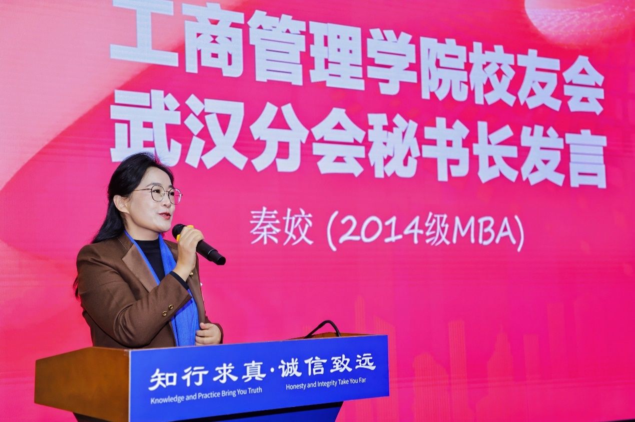 武汉分会会长郑伟(2013级农业经济博士)、秘书长秦姣(2014级MBA)分别发言。