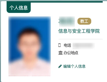 该模块包括个人照片、姓名以及所属学院信息,如下图: