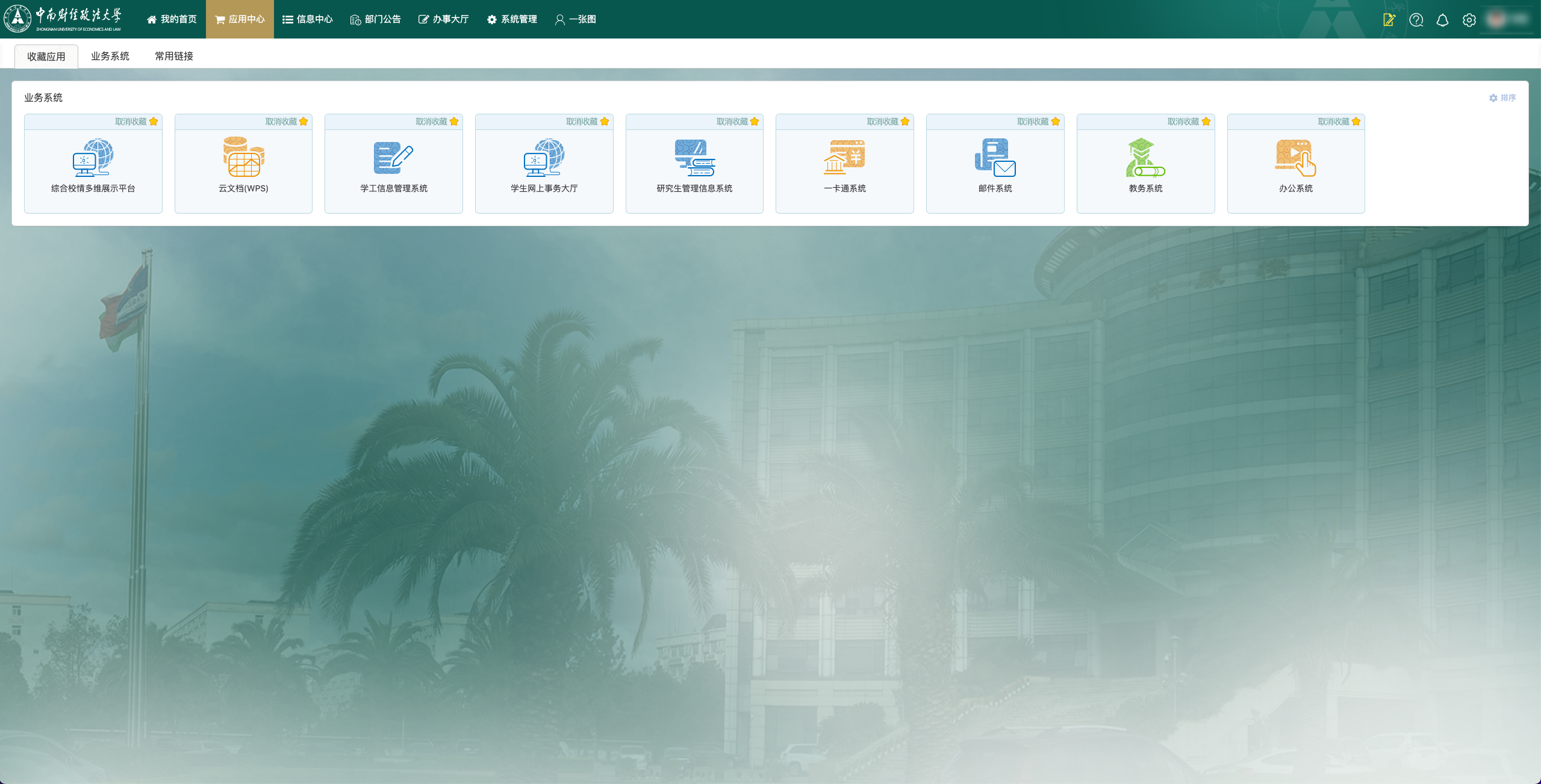 用户可根据需要收藏应用,用户也可以直接在搜索框中输入应用关键字进行应用搜索,来快速定位相关应用,如下图所示