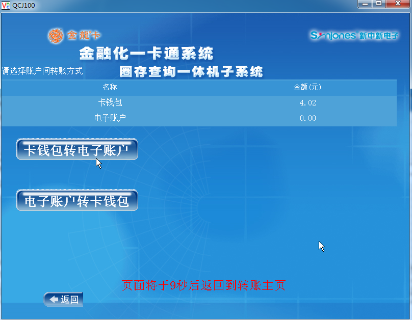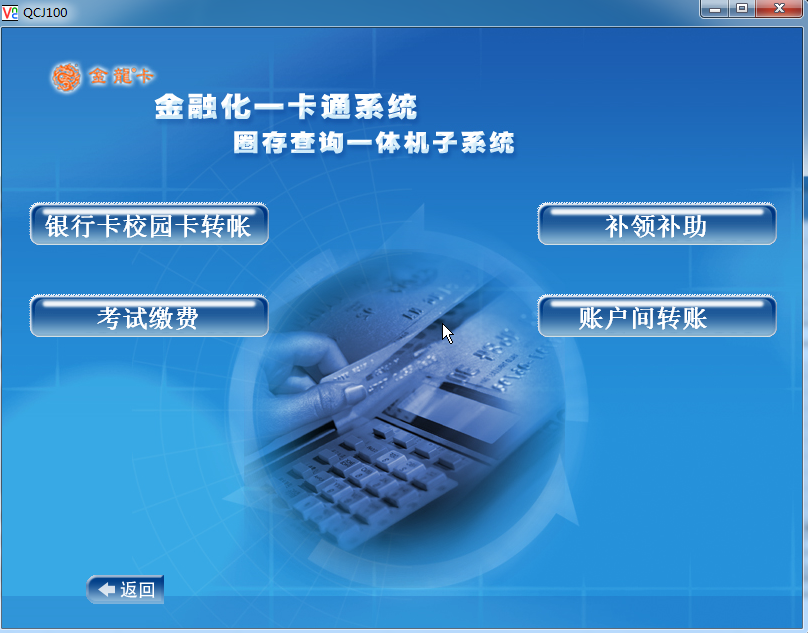 第一步:在校园内任意圈存机上选择“转账业务”按钮,放上校园卡,开始电子账户充值;