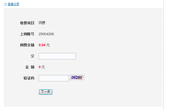 第二步:登录成功后,在缴费业务栏目下选择“网费”,输入缴费金额及验证码;