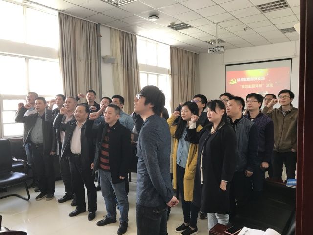 党支部纪检委员闫蓝海同志带领大家重温了入党誓词,诵读了党章第一章:党员。党支部组织委员王培顺同志详细介绍了发展党员的指导原则、工作流程、及责任和工作纪律等,并完成了支部全体党员的党费收缴工作。