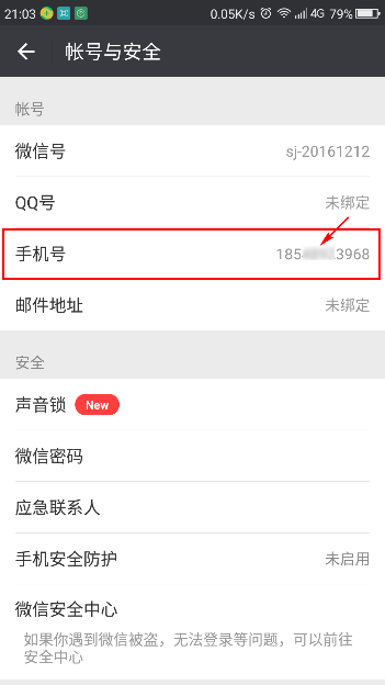 查看当前微信绑定的手机号方法:设置—>账号与安全—>手机号