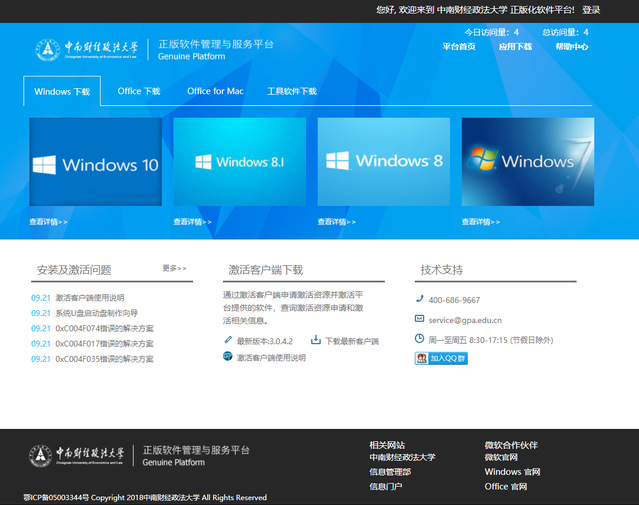为了促进知识产权保护,加强计算机系统的安全,保障我校教学、科研、办公使用计算机操作系统及办公软件的需要,信息管理部组织采购了软件正版化服务(2019年度),并搭建了正版软件管理与服务平台(以下简称“平台”),该平台面向全体师生提供正版化软件的免费下载和激活服务。现将有关事项通知如下: