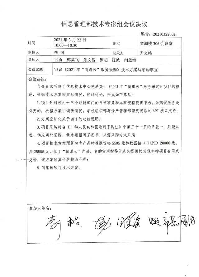 采用单一来源釆购方式的原因及说明: “码上办”的开发和运行依赖于PaaS架构的简道云平台。该云平台2020年度服务在2021年3月27日到期,如若未按时缴费将导致校内依赖“码上办”的136条线上流程完全无法工作,无法找到替代的工具。因此,该简道云2021年服务的采购是必要的。同时,为了应对各个业务部门新的需求,更方便地开展日常工作,需要增加采购简道云提供的API接口服务。