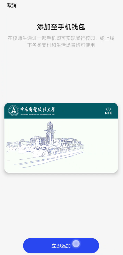 开通完成后,可看到您的米兰电竞·(中国区)NFC校园卡,将其设为默认卡后即可使用。后续可在手机钱包中对NFC校园卡进行管理,刷卡时自动弹出NFC校园卡。