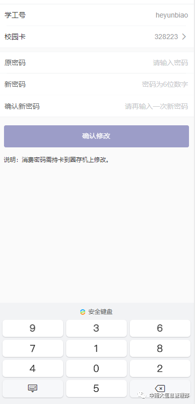 进入“修改密码”,可修改查询密码,修改查询密码前还需验证原密码,密码为纯6位数字。