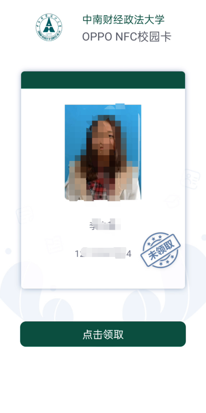 (2)进入手机钱包APP领卡页面,点击领取,等待手机领卡成功。