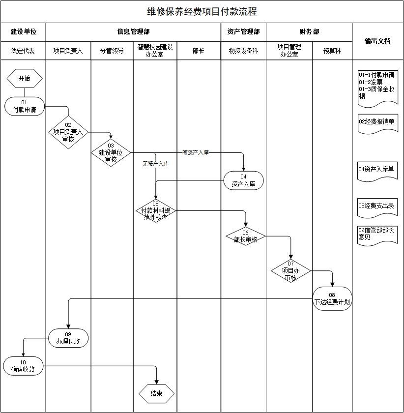05 | 付款材料规范性检查 | 智慧校园建设办公室 | 智慧校园建设办公室对付款材料进行规范性检查并出具经费支出表。 | 附件4:经费支出表 |