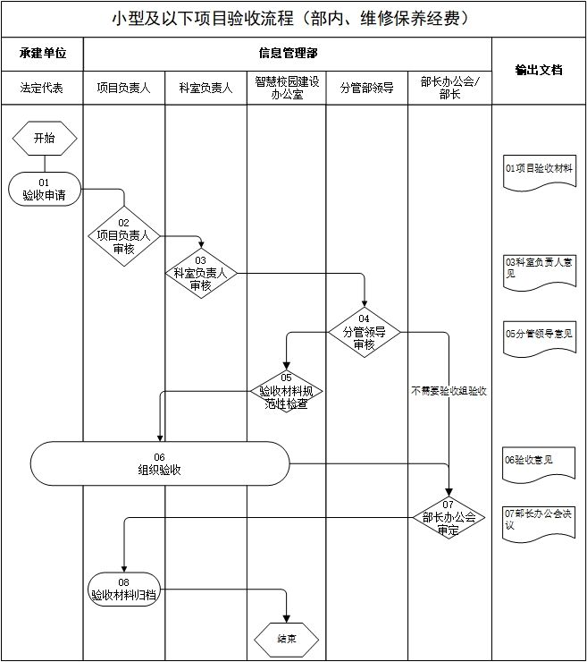 05 | 验收材料规范性检查 | 智慧校园建设办公室 | 智慧校园建设办公室对需要进行验收的项目进行验收材料规范性检查。 | |