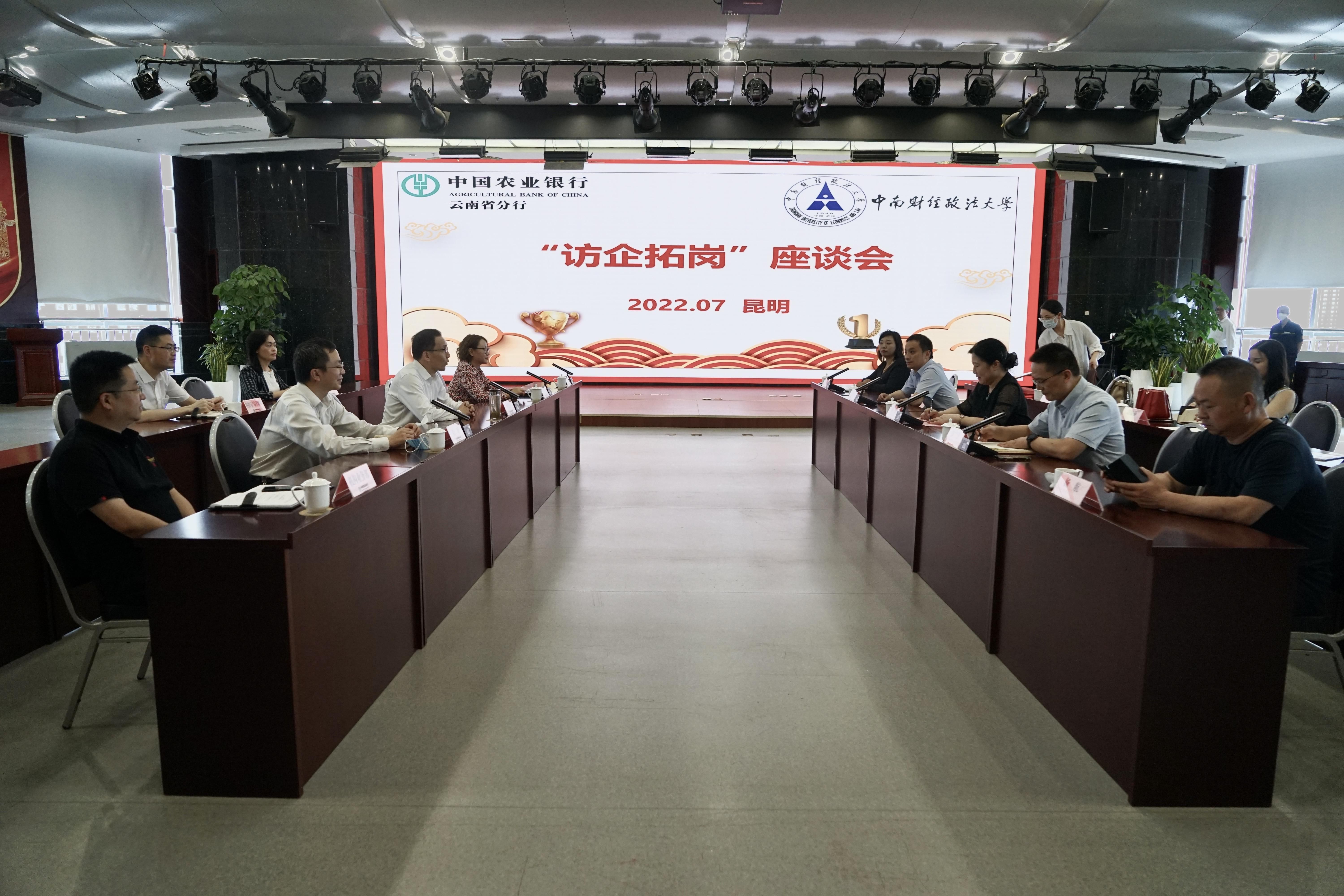 在调研座谈会上,姚莉代表学校向银行表示诚挚的谢意,并简要介绍了学校的发展历程以及在财经、政法领域举足轻重的地位,她指出,学校目前以培养经、法、管融通型人才为目标,为国家和社会输送了超过四十万名优秀人才,希望通过“访企拓岗促就业”活动,与农行云南省分行建立系统性人才合作关系,形成校企合作育人、协同创新的体制机制。