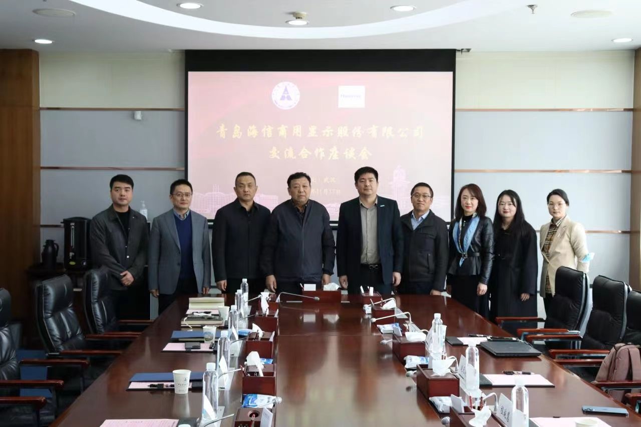 11月17日上午,青岛海信商用显示股份有限公司校企合作华南组组长、华南分公司总经理程施慧,湖北办事处教育经理刘武鹏、技术总监付倩来到我校交流合作事宜。校党委常委、副校长闫平,校友工作与社会合作部部长笪宁、教务部副部长邓松、校友工作与社会合作部副部长万莉等参加座谈会。