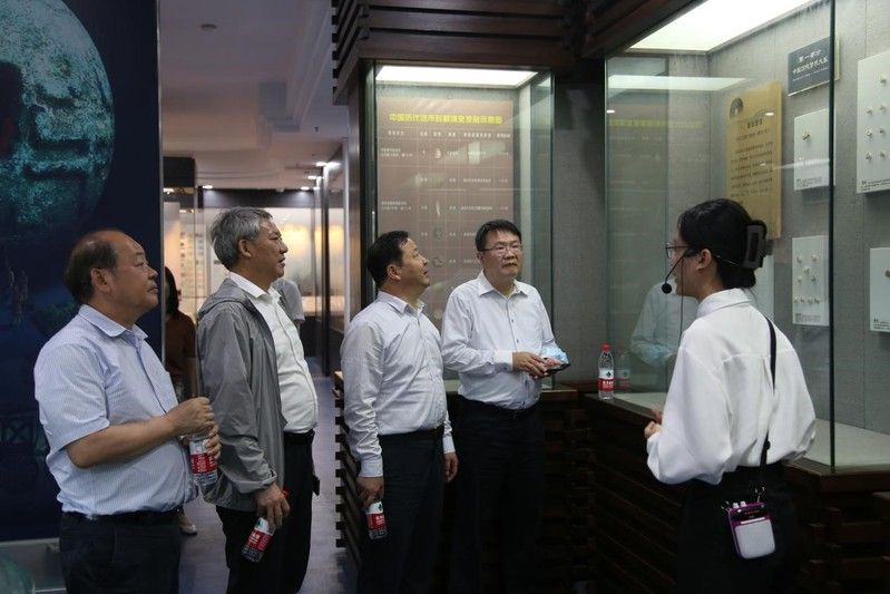 会谈后,交通银行总行董事李龙成,董事汪林平(82级政治学校友),董事穆国新,董事常保升(85级工业经济系校友)等一行参观了学校货币金融历史博物馆,嘉宾们饶有兴致地欣赏了馆藏的货币之源——贝币、春秋战国时期的布币、刀币、蚁鼻钱、圜钱、镇馆之宝——泰昌通宝折五钱、民国时期交通银行发行的纸币、1948年中国人民银行发行的第一套人民币以及“丝路泉踪——‘一带一路’货币展”展示的世界各国货币等,并对学生讲解员熟练而大方的讲解表示赞扬,对我校在培养学生综合素质方面取得的成就表示充分的肯定。