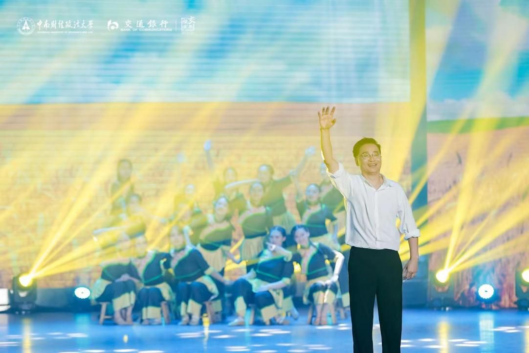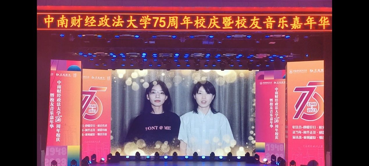 “中原楼中听风雨,晓南湖畔谱诗篇”,1999届金融学校友、武汉校友会副秘书长袁静梅和各学院学生代表诗朗了程韬光教授为75周年校庆创作的《中南心,校友情》,茶山刘的学子追忆着中南大的每一个朝朝暮暮,五湖四海的校友牢记着红色大学的使命初心。