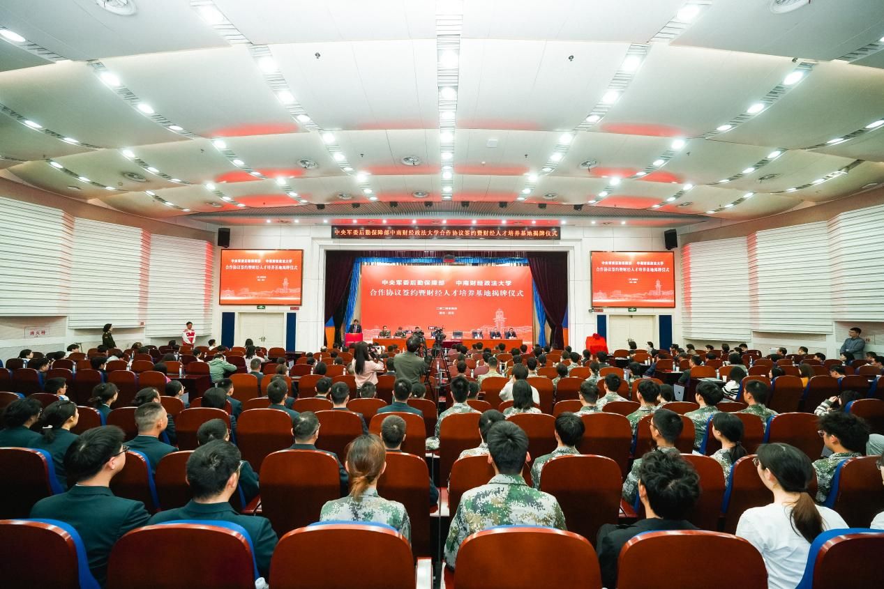 新闻网讯(通讯员 张亚星)4月8日,学校与中央军委后勤保障部合作协议签署暨“财经人才培养基地”揭牌仪式在文泉楼报告厅举行。军委后勤保障部政治工作局领导,党委书记侯振发,校长、党委副书记杨灿明,党委副书记陈狮,副校长覃红等出席仪式,军委后勤保障部官兵代表、学校相关单位党政负责人和部分师生代表参会。会议由校友工作与社会合作部部长笪宁主持。