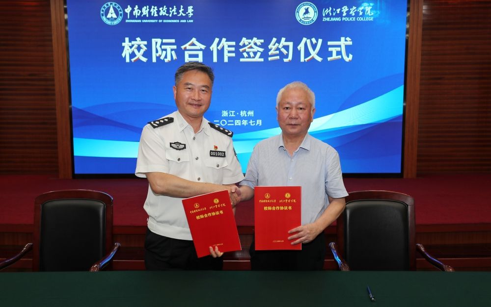 (通讯员 张亚星)7月9日下午,学校与浙江警察学院校际合作签约仪式在浙江警察学院举行。浙江省公安厅党委副书记、常务副厅长黎伟挺,浙江警察学院党委书记蒋建森、院长金诚、党委副书记周钦、副院长徐林、政治部主任刘永明、教务处处长余湘青等参加仪式;学校党委书记侯振发,校长、党委副书记杨灿明,党委副书记陈狮,党委办公室、校长办公室兼督察办公室主任刘建明,校友工作与社会合作部部长笪宁出席仪式;仪式由周钦主持。