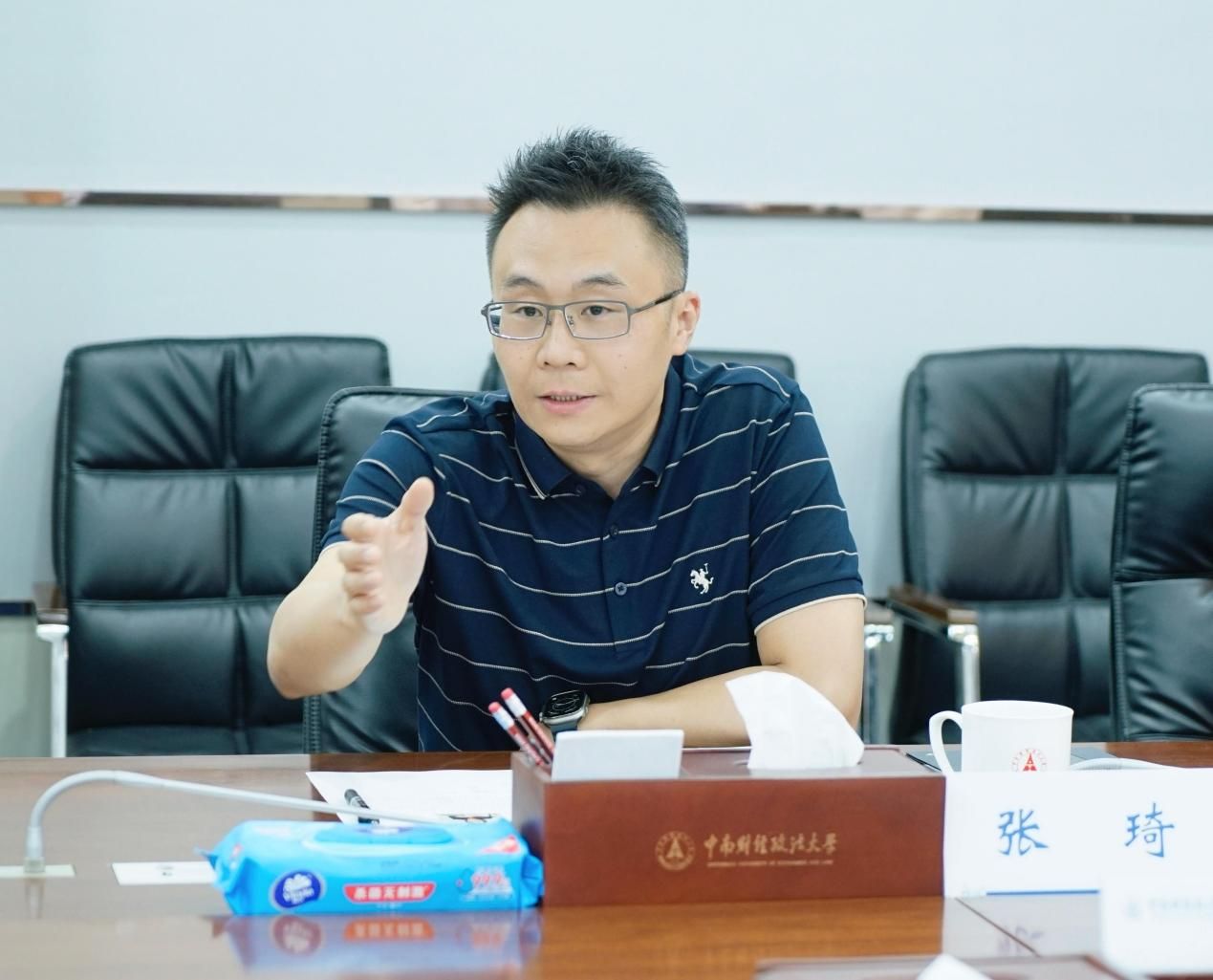 朱方伟热烈欢迎曾行长一行的到来,他回顾了学校的发展历程,介绍了学校的基本情况及财经政法深度融通、特色鲜明的办学特色和人才培养特点,他指出,学校在教育强国战略的牵引下,迎来了改革发展的机遇期,未来希望在人才培养、学生实习实践等多层面深化银校合作。