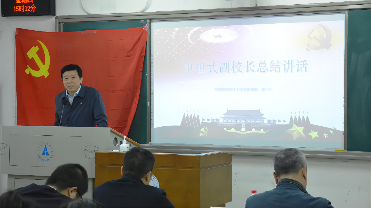 校党委常委、副校长申祖武作总结讲话。申校长首先肯定了此次支部共建活动达到了共建的效果,活动促进了师生间的交流沟通,进一步加强了两个党支部的联系,增强了党组织的凝聚力。其次,他认为本次活动紧扣党日活动主题,对深入学习贯彻党的二十大精神起到了很好的促进作用,同时他也对两个支部今后的共建活动寄予了希望。最后,申校长分享了自己学习二十大报告的体会,一是二十大报告科学谋划了未来发展的宏伟蓝图,二是中国式现代化赋予高等学校新使命,三是中国式现代化为青年学子提供了广阔舞台。申校长指出,当代中国青年是中国现代化进程中的骨干力量,青年学子要把个人发展与中国现代化进程进行有效衔接,同学们要将个人学业安排、自身素质提升、未来人生规划作一体化考虑,融入到中国现代化发展的新进程中。